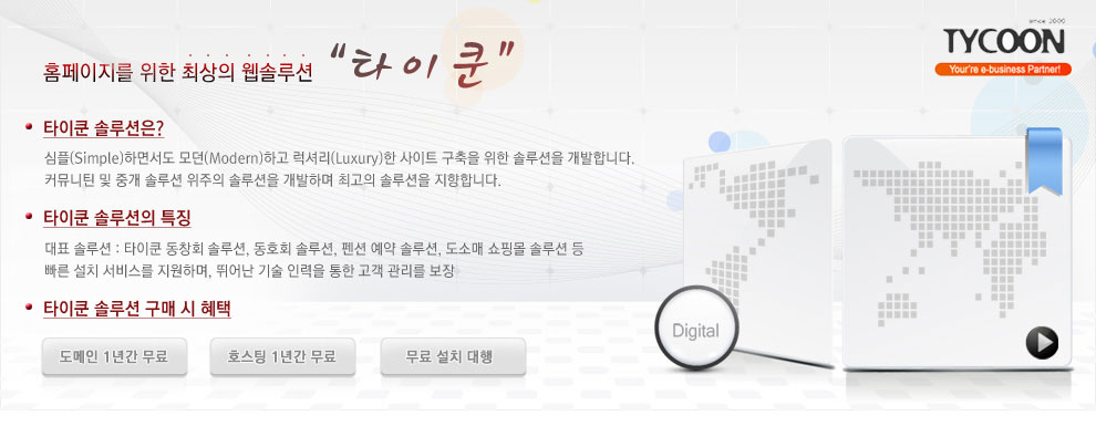 쇼핑몰  |  정보제공  |  홈페이지제작  |  커뮤니티  |  그룹웨어  |   소프트웨어  |   IT아웃소싱  |   부가서비스  |  이벤트숍  |  브랜드숍  |  사용안내 주문내역  |   장바구니